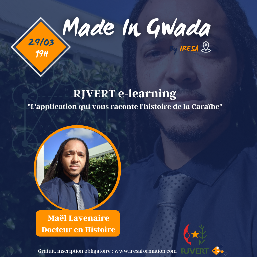 L’application RJVERT e-learning fondée en 2020 par Docteur Maël Lavenaire, un jeune chercheur guadeloupéen en histoire, spécialiste de la Caraïbe et des Amériques, se propose de corriger cet état de fait en alliant la nouvelle technologie à une diffusion pointue du savoir et de la connaissance.”